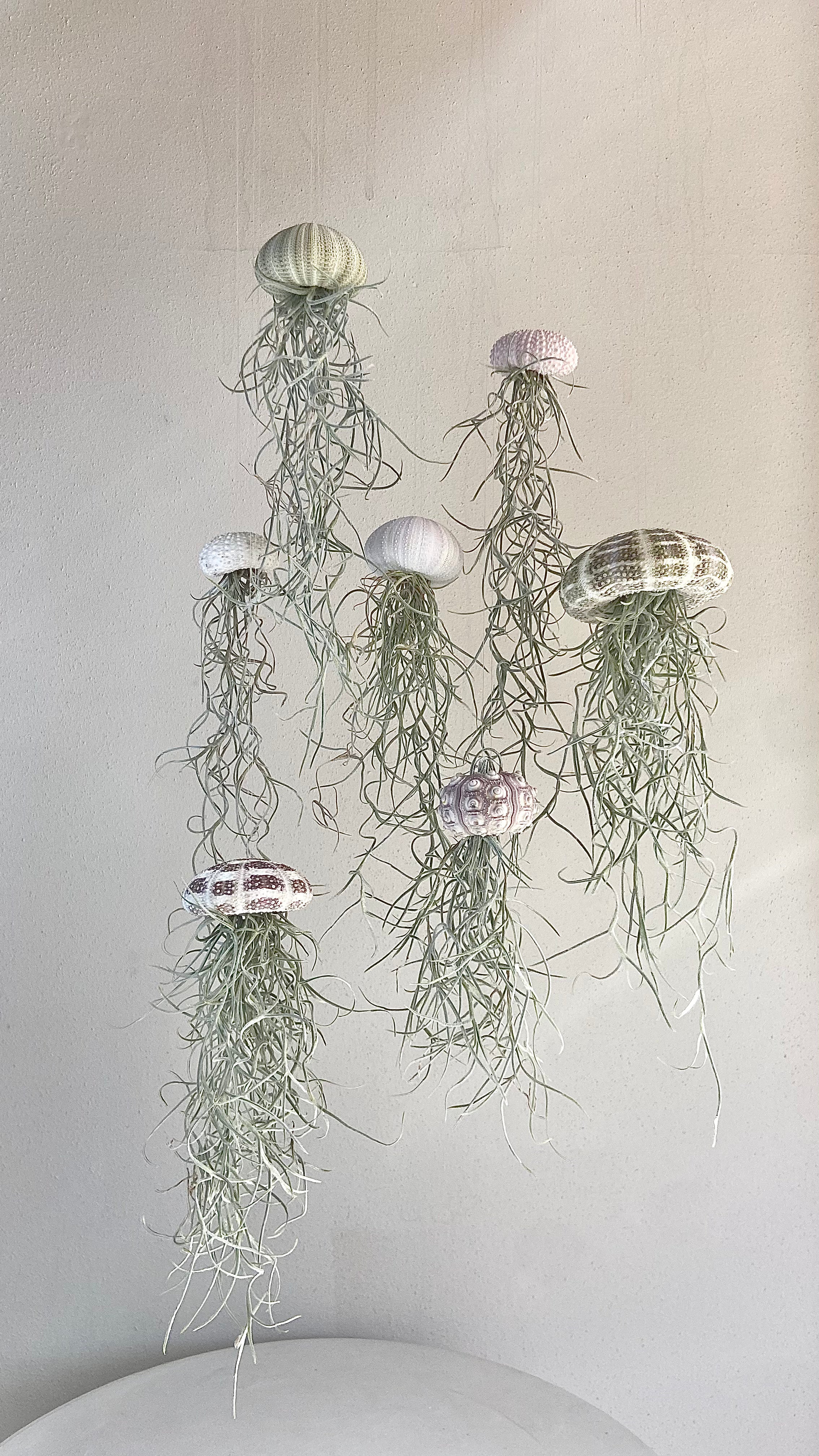 Airplantgopler giver et fascinerende blikfang til dit dit hjem! Airplantgopler er en sammensætning af søpindsvinskaller og spansk mos (Tillandsia Usneoides), som svæver fra en fiskesnørre.